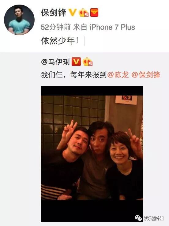 2月28日晚,马伊琍晒出与陈龙、保剑锋的合照,并称“我们仨,每年来报到”。圈儿姐不仅翻阅脑海中年轻的八卦史,他们竟然是朋友?或者还有什么关系?