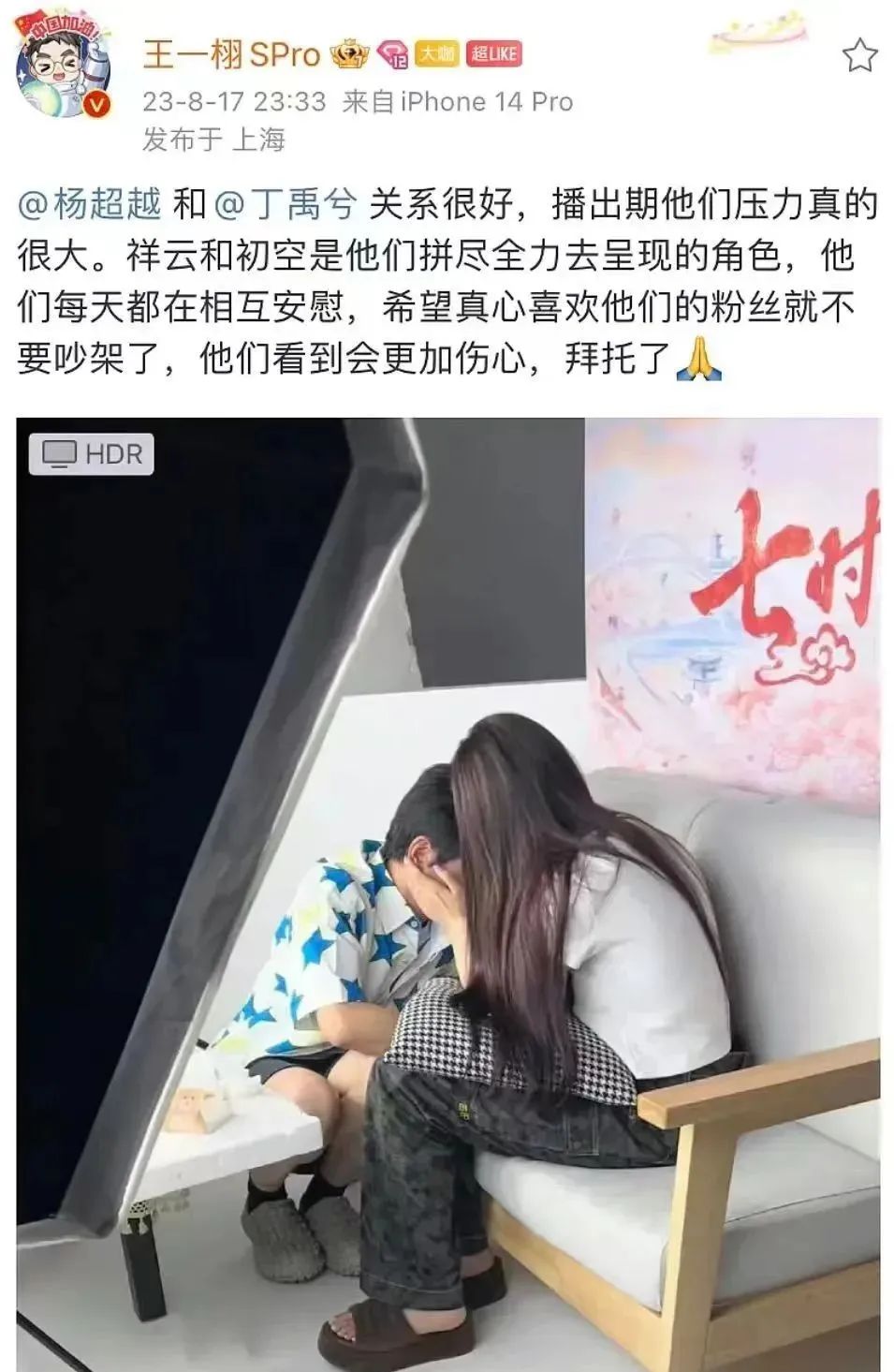 《七时吉祥》剧组这两天给大家奉献了一出全明星阵容的大戏。前脚直播间cp营业发大糖,借位吻惊掉一地下巴。后脚制作人拖家带口上场卖惨,压根不顾其他人脸面。
