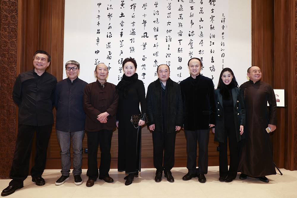 北京青年报社社长张延平、《北京青年》周刊出版人徐蓓与文艺批评家姜强国、国际著名设计师梁建国、世界著名摄影家陈长芬、中国国家画院常务副院长卢禹舜、青年书画家家昌等嘉宾合影留念。