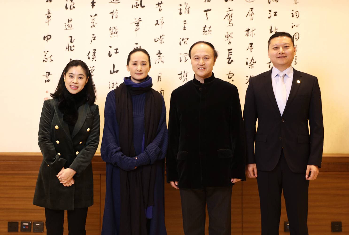 北京青年报社社长张延平、《北京青年》周刊出版人徐蓓与中央芭蕾舞团团长冯英、首都航空有限公司人力资源总监孙金伟合影留念。