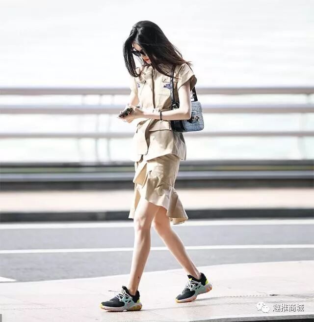 无袖风衣搭不规则半身裙的本就属于大胆的造型,如果没有超模的好身材作为基础,很容易穿出廉价感。裙装设计也充满创意,尤其是在裙边的荷叶造型,使得整体造型更具有蓬松大气之感。荷叶边裙装在包臀裙基础上作了延伸,更能突显出丰富的层次感。何穗的半身裙则是采用此种设计,不规则裙摆在行走间最能展现女性的灵动之美。