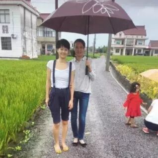 夫妻俩在村里和同乡们合影,穿着打扮非常低调,几乎不施粉黛,像是回乡探亲的表姐啊。