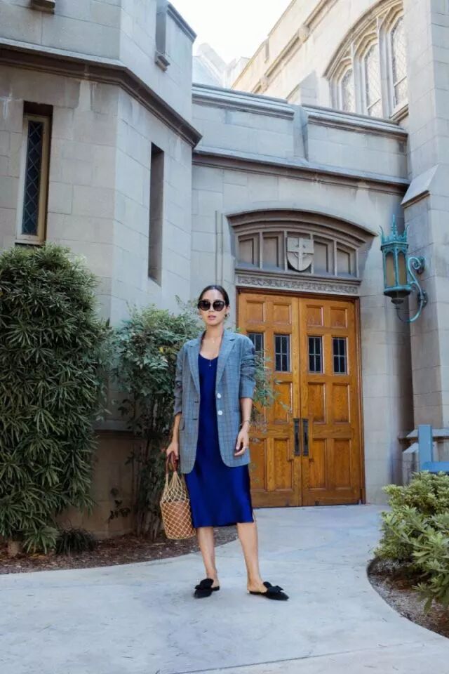 (2)夏季轻薄的连衣裙在这个时候也可以派上用场,丝质的飘逸感为冬日增添柔美。