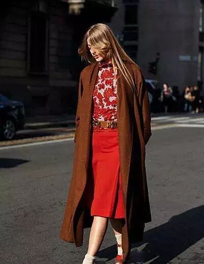 4.红色同色不同色度/明暗混搭 打造时装高级感