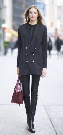 黑色作为多数人衣橱最常见的色彩,它的安全性可以让人不用担心穿错的困扰,但如何在黑色的基础上穿出时装感,那么整身材质对比的叠加就成为了关键,内搭的可看性决定整身着装的精致度,内穿西服或是用连衣裙叠加裤装的方式都能为黑色带来不一样的关注度。