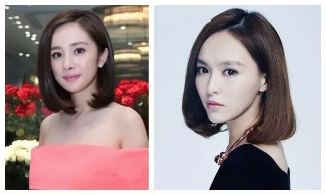 杨幂的齐肩内扣变身一个内敛的小女人,辣妈也有这么温婉的时候,很端庄优雅加淑女。唐嫣的齐肩内扣发型很有女神气质,和杨幂的气质大不相同。