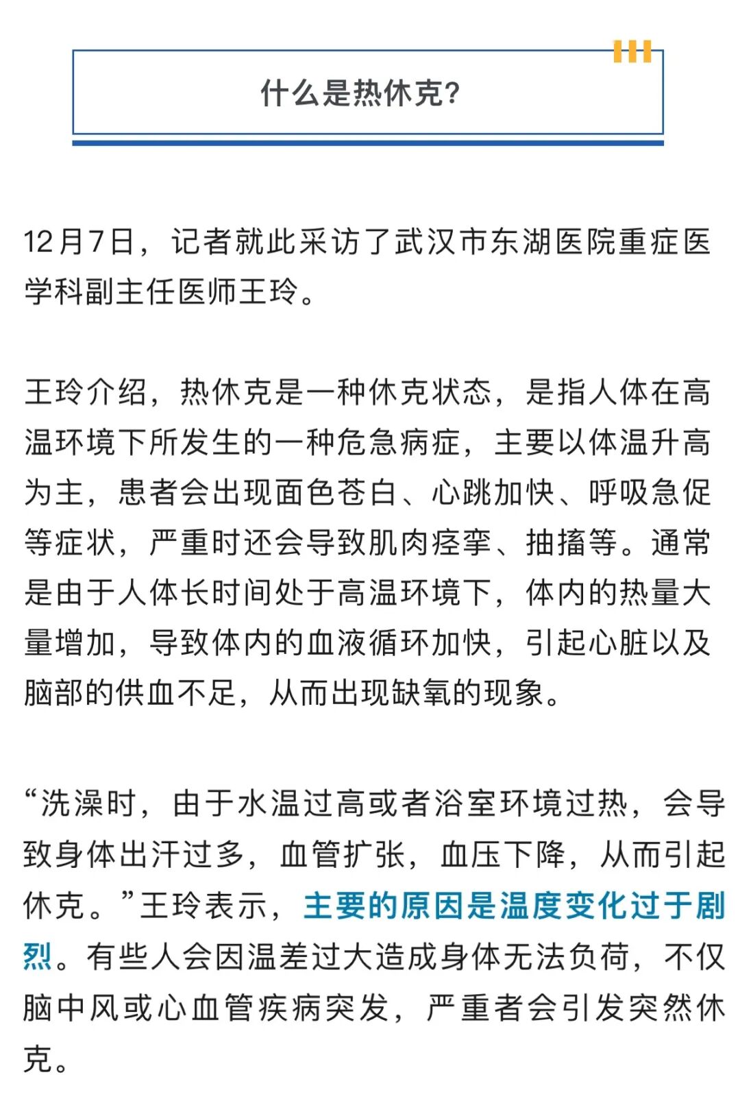 据了解,热休克并不罕见,冬天泡澡尤其容易中招。