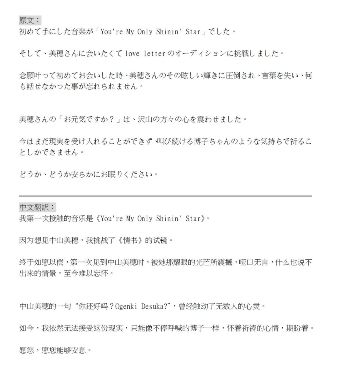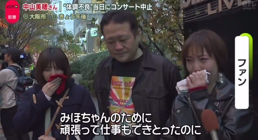 原本当天要在大阪看中山美穗演唱会的粉丝们,也是难以悲伤的流泪,一时难以接受从小看到大的偶像突然离开了。