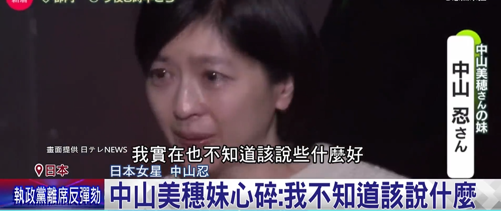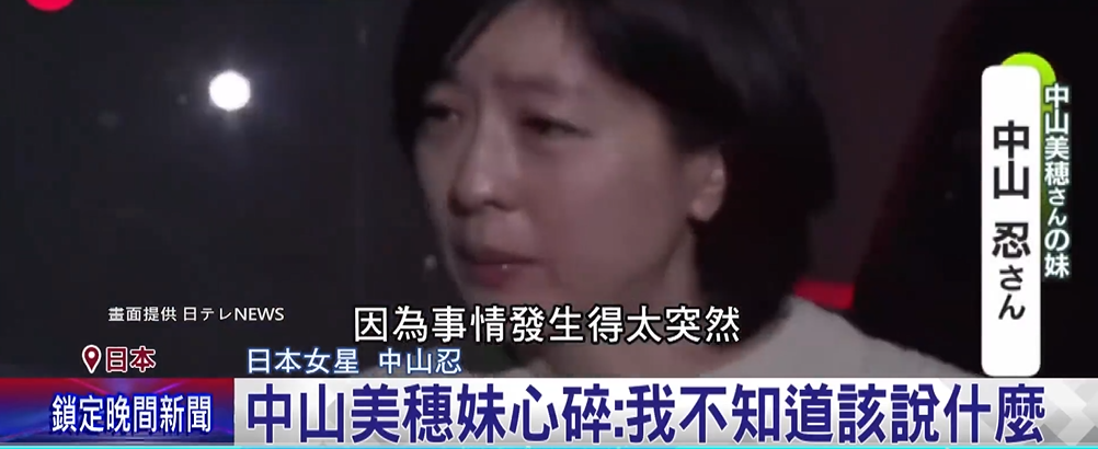 镜头前,中山忍哭红了双眼,万分悲痛。