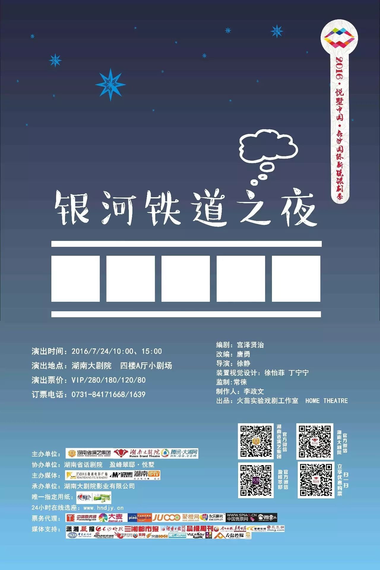 今明两天,小鉴将送出将于7月24日在湖南大剧院上演的话剧《银河铁道之夜》门票,共挑选出8位粉丝,每人送1张门票。
