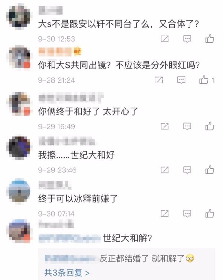 我擦...大S和安以轩不是不同台了吗,这次终于冰释前嫌了。