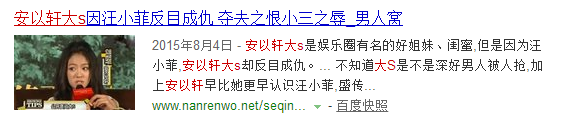 大S以前就是她要好的闺蜜,不过好景不长,因为一个男人两个人更是拼的你死我活。大S也是在她举办的一个聚会上认识了汪小菲,可安以轩暗恋着人家,自己的闺蜜抢了自己最喜欢的人,好姐妹自然崩盘了。