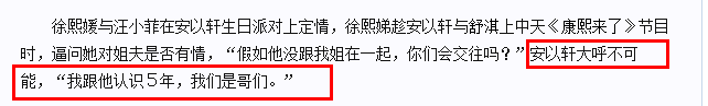 2011年,安以轩上了《康熙来了》,小S就问她如果汪小菲没和大S在一起,安以轩会不会和汪小菲在一起。