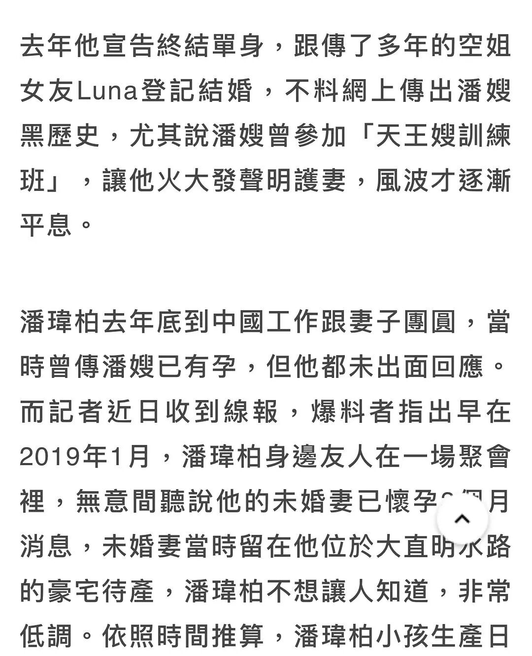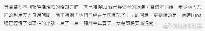 还有知情人士透露,潘玮柏之所以公开婚讯,也是因为女儿即将出生。据悉,早在2019年1月,Luna就曾被指已怀孕,但随后潘玮柏发文否认。