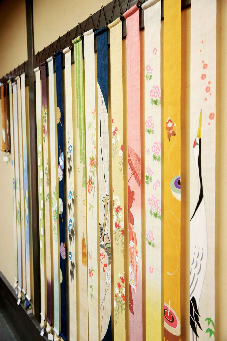 和服以外,过去也多用于“花嫁暖帘”,按能登·加贺·越中特有的风俗,新娘出嫁那天需将这价值几百万日元的暖帘带去夫家,挂在佛堂门口,且只能用这一次。在当地人心中的地位就像是一生一次的婚纱礼服,加贺友禅的暖帘也是不可缺席的奢侈与回忆。