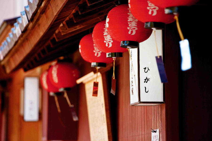 站在东茶屋街的入口柳树旁,随着两排古老木格子屋望至尽头,是层叠的山丘。沿着石板路信步而行,多为和果子、日本酒、工艺品的咖啡小铺或杂货铺,这条留有浓厚藩政时代风貌的古街,过去曾是格调颇高的社交场所,傍晚时分可有幸目睹偶尔走过的艺妓。
