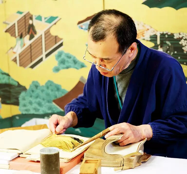 5角硬币重的小金片经过机器敲打成万分之一毫米厚、16 平方米大的金箔,再由同为金泽传统工艺的特制和纸隔开保存,可使金箔产生柔软的张力和光泽。听似简单,敲打时必须要用手按着金片让其受力均匀,手指随时可能受到强击;每道工艺中需要绝对的静心和呼吸控制,一阵微风就可能让金箔纸化成碎块。