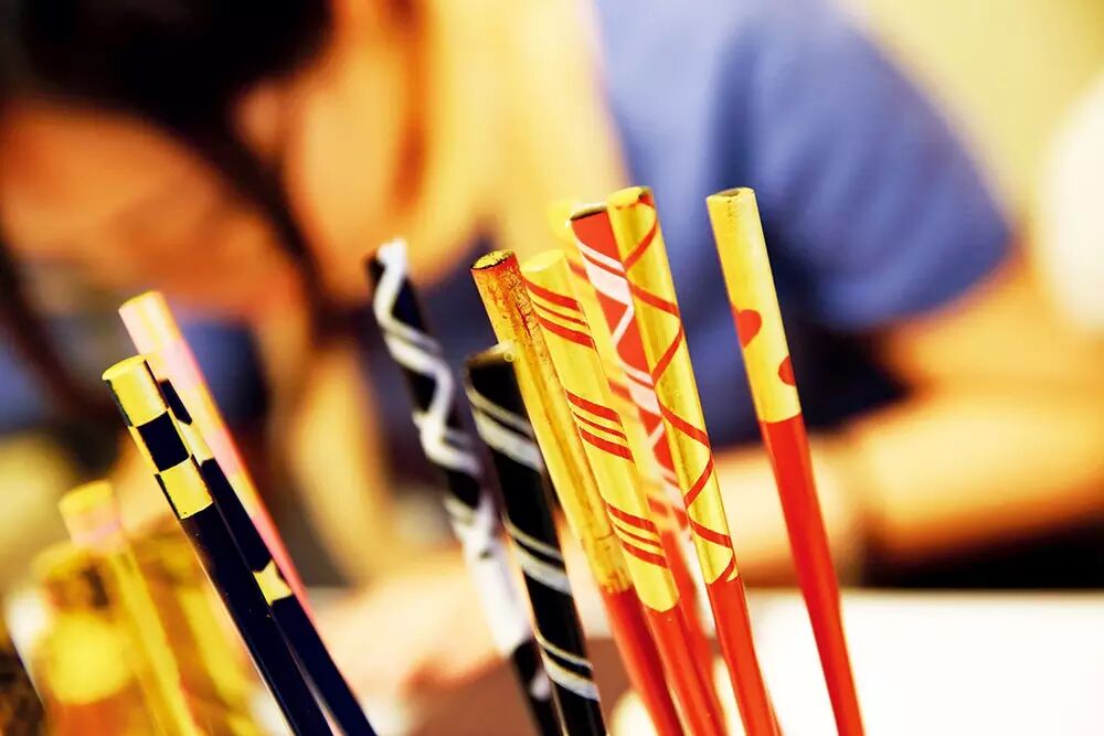 在金泽体验自己制作金箔筷子