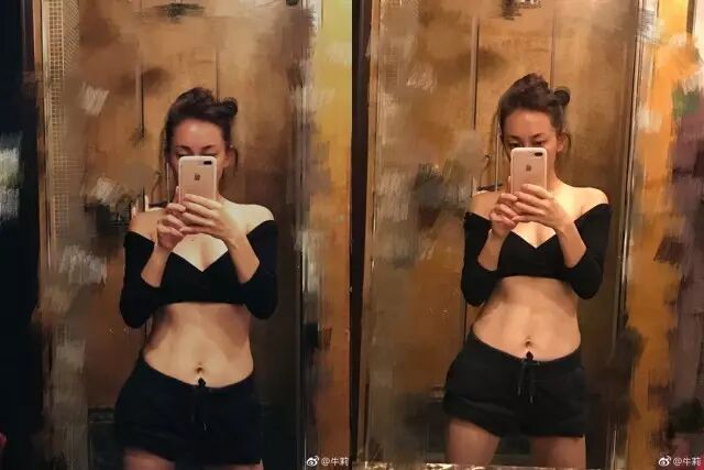 45岁的牛莉晒出一组健身照,大秀好身材,她身穿黑色深V露肩短上衣,大秀马甲线和傲人上围,身材超好。
