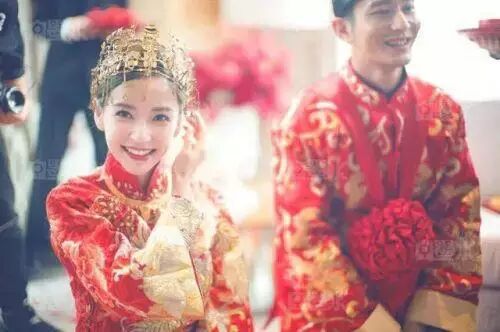 ↑大婚当天的中式喜服也算是“古装”啦!银饰一变金饰顿时又让新娘baby整个人贵气了起来