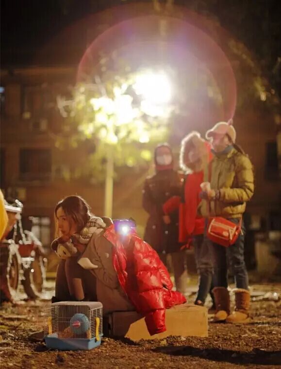 挺着大肚子拍《小时代3》,穿着薄外套淋雨,又跑又跳