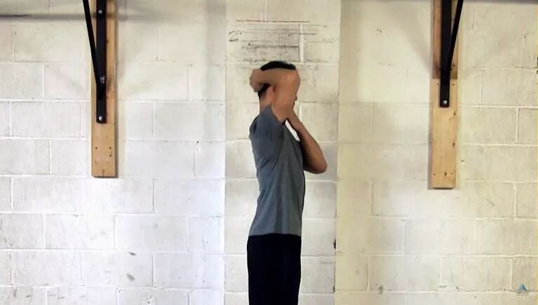 双手大小臂呈90度,小臂平行地面,吸气,呼气的时候,双手在墙壁向上滑动。吸气,向下,每一个位置停留10-20秒,然后完成3组,每组10次。