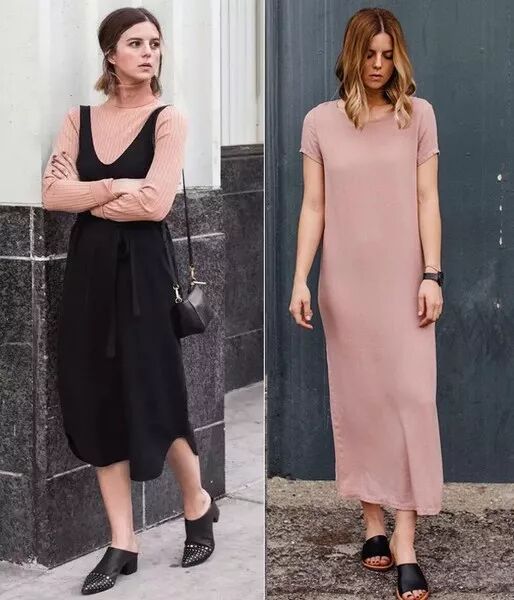 要把小粗腿藏起来,中长裙是一个不错的选择。简约的直筒款不易出错,但是单穿略微单调,玩撞色是一个很好的做法!例如粉+黑!