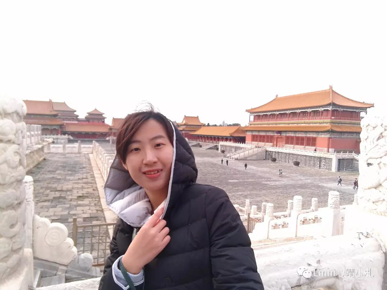 发现我身后人烟稀少了吧~其实北京旅游已进入淡季,一则天气太冷,二则雾霾天(后几天证实了我的猜想),最好的就是避开了旺季的人潮,永恒的排队和照片里无数的“路人甲”(包括自己)。。