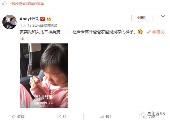 黄毅清晒出了女儿离开自己回妈妈那里的时候哭泣的样子。