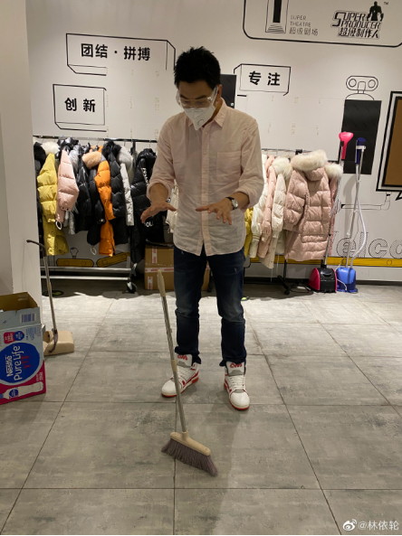 此外他还紧跟网络潮流,比如说参加立扫把挑战。