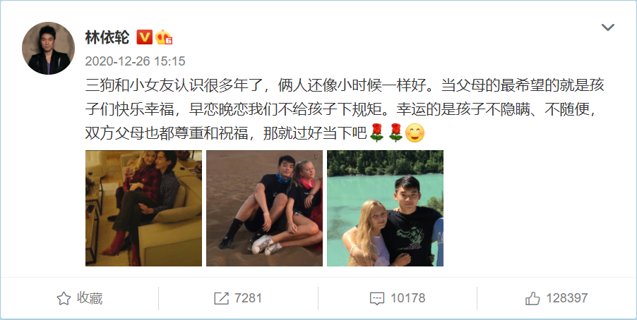 有一个温柔贤惠的妻子外,林依轮还有两个帅气又争气的儿子,大儿子是学霸,以优异的成绩考入国外顶尖的设计学院,二儿子是模特,登上过巴黎时装周的T台。而林依轮与儿子的关系更像是朋友,不干涉儿子的私人生活,做孩子背后的大山。