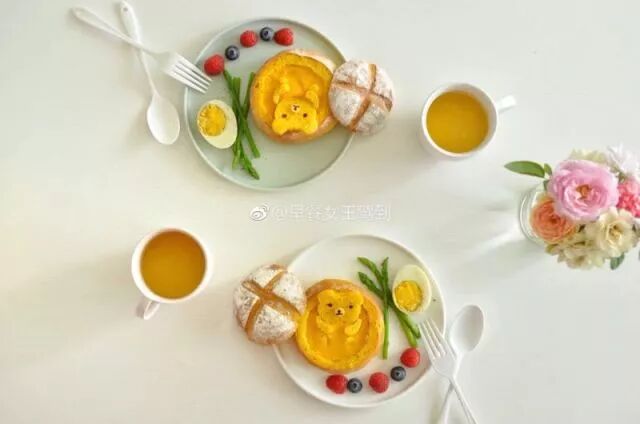 感受下微博美食博主@早餐女王李唯 的早餐照: