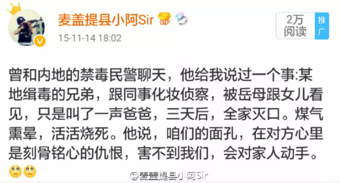 想想这些人的牺牲,那是把全家人的性命都绑在裤腰带上的人,我们又有什么资格替他们原谅那些吸毒的人。