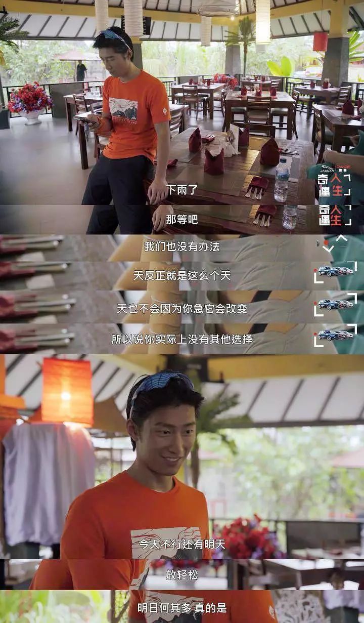 拍摄进度因为天气受到了影响,窦骁被迫取消后面巴厘岛的行程,但是还是会不断的安抚阿雅,最后连“明日何其多”这种至理名言都出现了,毕竟在很多时候我们都无法掌控事情的发展,那还不如坦然的接受它,人最重要的就是开心嘛!