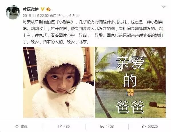 在生活中,不论是陪伴在女儿身边时,还是出差在外,黄磊都时刻记得表达对女儿们的爱。