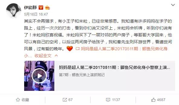 而伊能静也很爱做假设性问题,她的目的也很纯粹,就是想听秦昊哄哄她。比如要是她生不出秦米粒怎么办之类的。