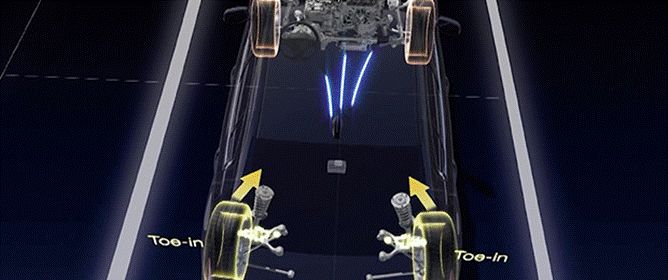 在高速变线时,后轮与前轮转向角度相同,提高了行使的稳定性;