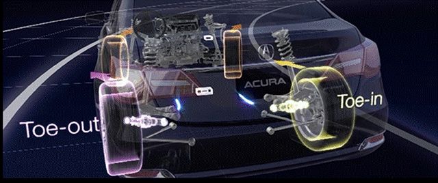其次,非常值得一提的是它还配备了Acura独创的PAWS四轮精准转向系统,通过控制装配在后桥上的电机,让后轮可以在一定角度内偏转,使行驶更敏捷、更稳定。这就好比博尔特跑步虽快,但也只是局限于直线奔跑,相反,用四角奔跑的猎豹,不仅速度是博尔特的3倍以上,还可以在急速奔跑时紧急变换方向。