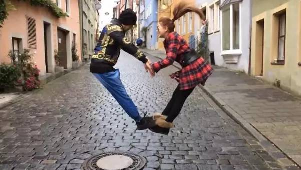 在大街上牵手跳到头发飞起
