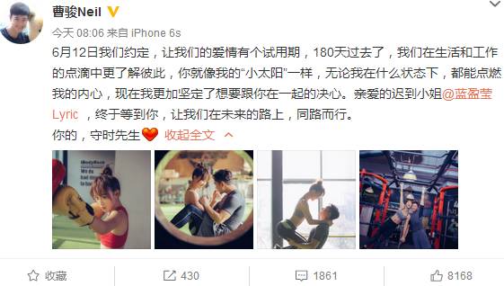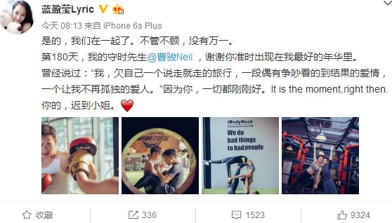 今天刷微博的时候,猝不及防的看到曹骏和蓝盈莹宣布恋情了~