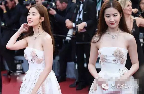 刘亦菲也美的不甘示弱,第一次亮相戛纳红毯,天仙攻气质爆棚。看,这就是“神仙姐姐”刘亦菲在戛纳红毯上的造型,白底绣花抹胸礼服,简单温婉又不失大气,很仙很美有没有!小巧的脸蛋,精致的五官、白皙的皮肤、清纯的气质,底子好就是省事啊,简单的打扮一番就美爆全场的节奏有木有!但是,小编不得不煞风景的出来说一句,这些图片都是咱们国内网上曝光的,已经PS修过的美图。
