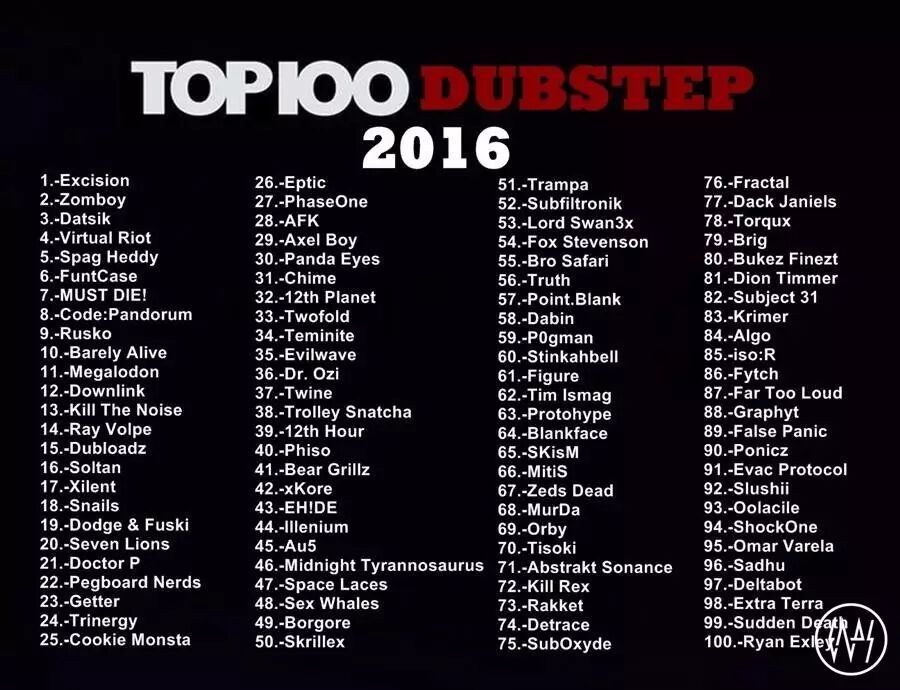 有人质问,为什么在2016年的百大Dubstep DJ排行榜中Skrillex在第50名?自从2016年到现在,这个问题在全世界就没有消停过。我们可以很肯定地告诉大家,如果这个榜单是百大Trapstep DJ排行榜,Skrillex以及OWSLA旗下的许多名将,可以毋庸置疑地包揽前十,但是作为一整年都没有做过Brostep的“前代表人物”,排名掉到50反倒非常合理,就像如今你不能再拿Tiesto说是“Trance第一人”。