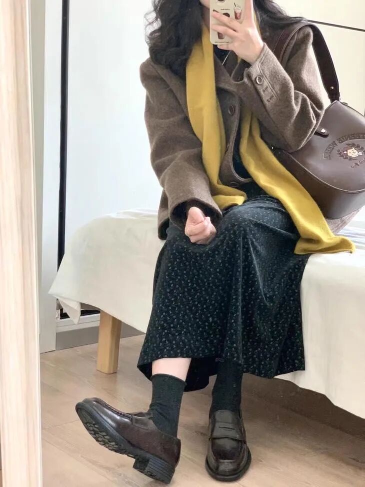 ✅ 搭针织衫、半裙,