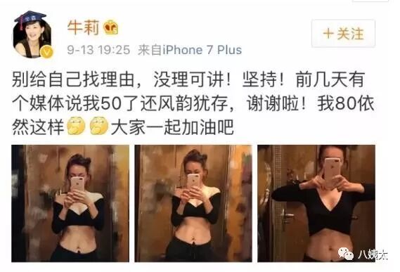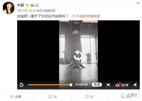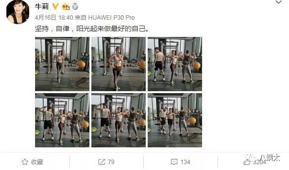 翻看她的微博,发现牛莉平时基本都在健身。