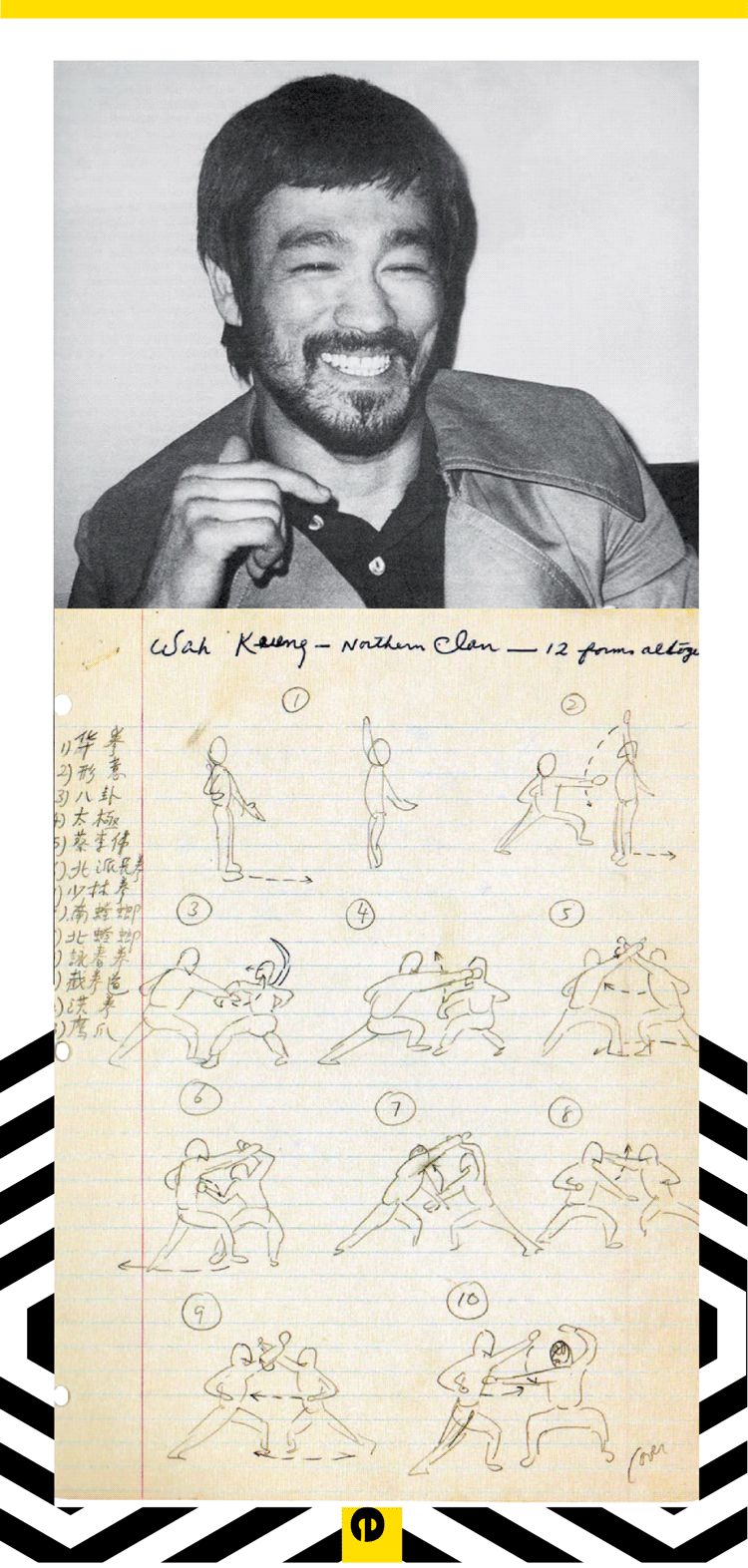< 李小龙亲笔功夫画稿,图片来源:知中 >