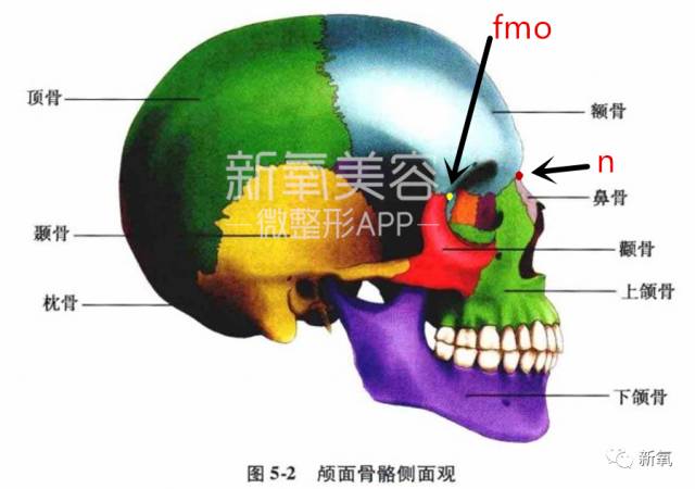 整个五官都是前后纵深非常的大的布局,换句话说,立体度过高。妹子的鼻颧角(也就是下图中的fmo-n-fmo角)过小的同时,下颌部位又进一步加深了五官的前突感。