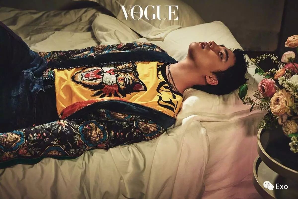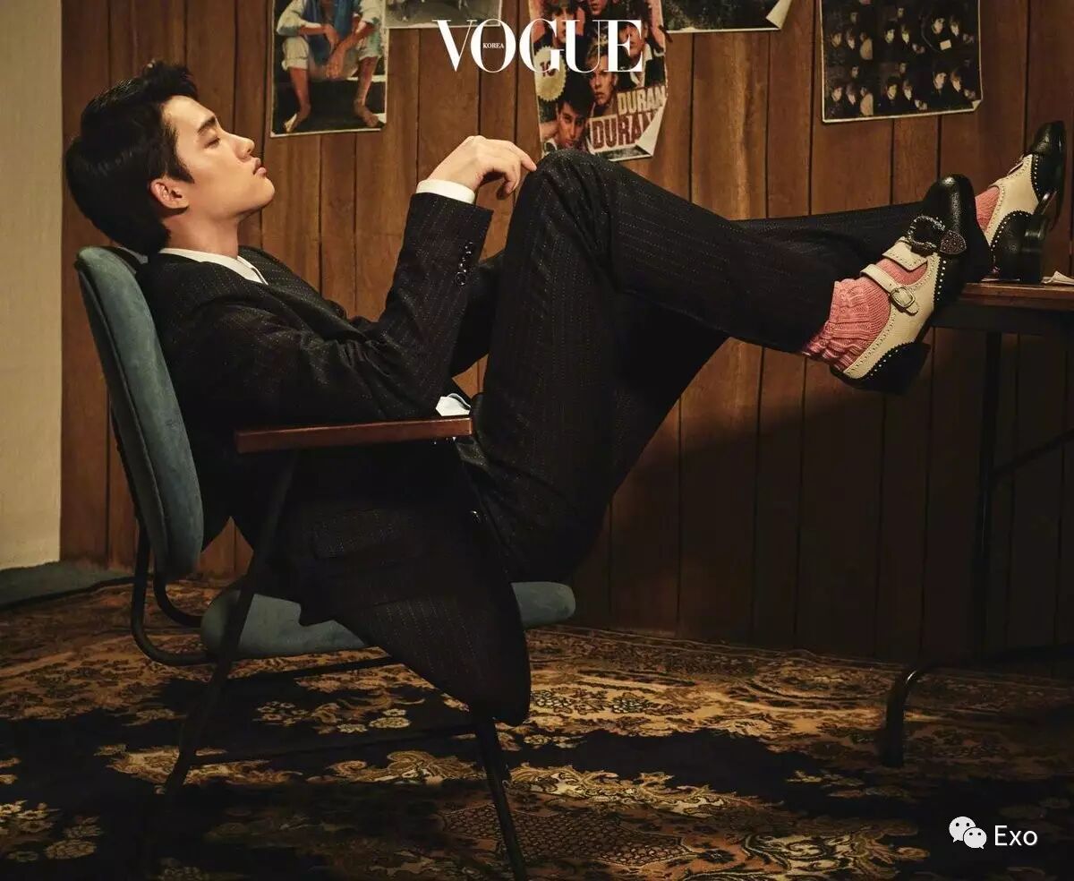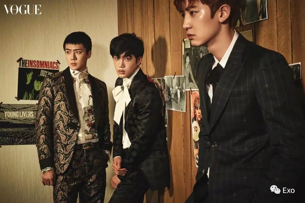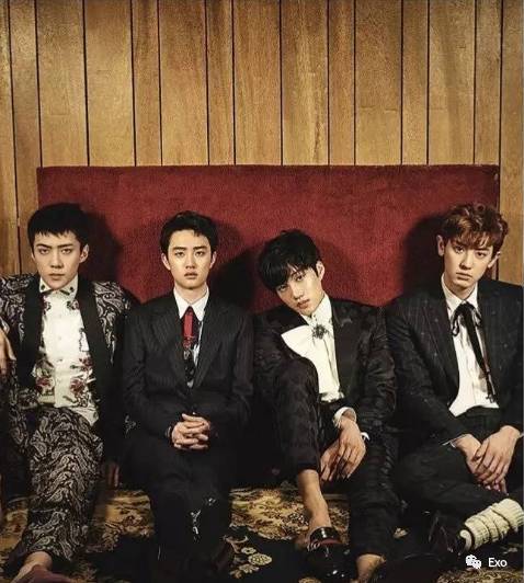 此版画报由EXO弟弟Line灿烈、D.O.、KAI、世勋演绎,大牌加身从里到外洋溢成熟魅力散发着深沉美吸引视线