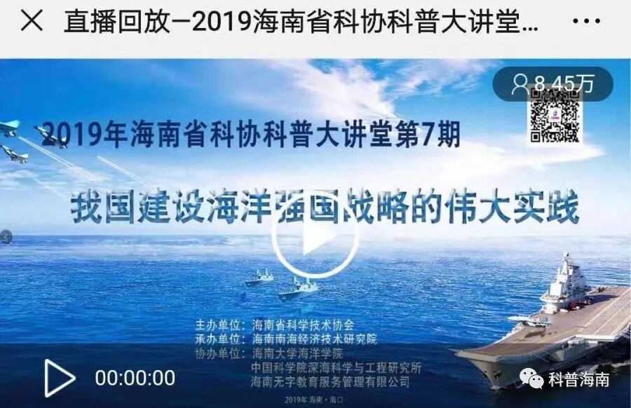 10月19日上午,由海南省科学技术协会主办、海南南海经济技术研究院承办、海南大学海洋学院、中国科学院深海科学与工程研究所和海南无字教育协办,作题为《我国建设海洋强国战略的伟大实践》的科普讲座,在海南大学行政办公楼一楼报告厅举行。