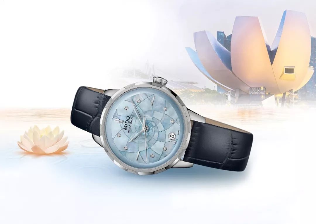 “灵感源于建筑”是Mido一以贯之的设计美学,本次陈妍希与凯渥名模此次展示的四款Mido花淅系列长动能女士腕表,灵感正是来源于新加坡滨海金沙艺术科学博物馆。