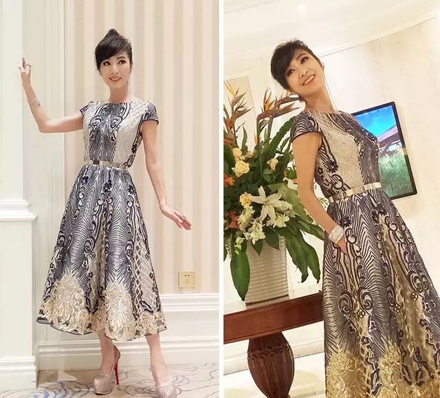米雪就是简单的穿了件连衣裙,小圆领配短袖,清爽的很应季。就算裁剪再怎么低调,也还是抵挡不住裙子上繁复花纹透露出的贵气,黑色纹路蔓延全身满满都是精致的细节,末了还用白色蕾丝在裙摆稍作点缀,既呼应了上身还丰富了层次;银色腰带还顺手和高跟鞋遥相呼应,我也终于明白了低调奢华是种什么样的感觉~
